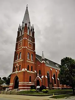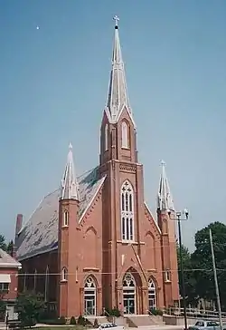 In 1839, French missionary Jean-Antoine-Marie Pelamourgues was named the first resident pastor of St. Anthony's. His duties included attending the communities of Muscatine, Burlington, Iowa City, Columbus Junction, DeWitt, Lyons, and Stephenson, Illinois, across the Mississippi River from Davenport.[3] Pelamourgues studied to improve his English; when German immigrants began to arrive, he took up that language as well. He helped establish the parish of St. Kunigunda in Davenport, where services were held in Latin and German. When the German pastor at St. Kunigunda refused to serve the needs of Irish immigrants who settled in the west end, Pelamourgues built St. Mary's two blocks away.