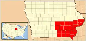 | Territory | 22 Counties in the Southeast quadrant of Iowa |