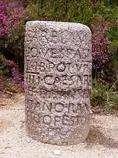 Many of these milestones were investigated and analyzed by Francisco Martins de G. M. Sarmento (1833–1899) and Albano Belino (1863–1906).[1] A series of milestones that were classified in 1910 by Martins Capela (later known as the Série Capela), in his public examination of milestones of Conventus Bracaraugustanus dating from 1895.[2] In this work, Capela inventoried a group of 21 milestones or fragments (of which there is no evidence from where they were discovered), including 20 encountered in the Campo das Carvalheiras in Braga and one near the Church of Freixo, in Marco de Canavezes.[2]