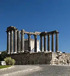 The Roman Temple of Évora (Portuguese: Templo romano de Évora), also referred to as the Templo de Diana (albeit wrongly, after Diana, the ancient Roman goddess of the moon, the hunt, and chastity) is an ancient temple in the Portuguese city of Évora (civil parish of Sé e São Pedro). The temple is part of the historical centre of the city, which was included in the classification by UNESCO as a World Heritage Site.[1][2] It represents one of the most significant landmarks relating to the Roman and Lusitanian civilizations of Évora and in Portuguese territory.