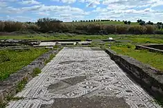 Clearly visible is the pars urbana, the living area of the owners. Mosaics with geometrical and naturalistic motives are to be found in the more important of the over 40 rooms of the pars urbana.[2] There is also a well-preserved hypocaustum (an underground structure for heating) of the spa.[2] The apodyterium, caldarium , tepidarium and frigidarium have been identified. Also in the pars rustica, where labourers, animals and farm tools were located and the pars fructuaria (including the granary, the winery and stables), recognizable details are visible.[2]