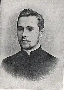 Smetona had recently passed his entrance examinations for the Samogitian Diocesan Seminary in Kaunas.[13] However, he had felt no great calling for the priesthood and enrolled into Jelgava Gymnasium instead. Jelgava Gymnasium was a cultural hub of the Lithuanian National Revival and attracted many future leaders in Lithuanian culture and politics, including Juozas Tūbelis (1882-1939) and Vladas Mironas (1880-1953) who later became Smetona's political companions.[14] In particular, Lithuanian language and culture was openly promoted by Jablonskis, with whom Smetona developed a close friendship.[15] Both Antanas Smetona and Jablonskis were great promoters of the Lithuanian language and culture. The Chodakowski family was soon inspired by their passion. Romanas’ youngest sister Jadvyga once asked Jablonskis, who was visiting the Chodakauskas house, “Who am I?” Jablonskis answered, “Well, how do you feel?” Jadvyga replied, “I feel Lithuanian.” “That's it!” Jablonskis exclaimed.[16]