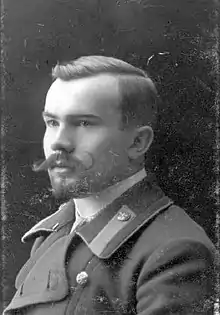 Romanas trained at the Vladimir Military Academy in St. Petersburg.[18] The Vladimir Military Academy was a military educational institution of the Russian Imperial Army, which trained infantry officers.[21] It was located at Malaya Grebetskaya Str., 5, 9; B. Grebetskaya (now Pionerskaya) st., 18 St. Petersburg and had been operational since December 1, 1869.[22][23] In the fall of 1914, with the outbreak of WWI, the school switched from a two-year to a four-month accelerated program. Graduates were increased from 400 to 885 and received the rank of ensign upon graduation.[22] Romanas graduated in 1915.[18]