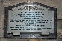 One of the Titanic's engineering officers, Arthur (Bob) Ward, who died in the sinking, is commemorated in the Abbey with a plaque in one of the chapels.