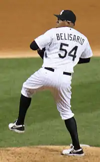 On May 20, Belisario earned his first save as a member of the White Sox.[12] The next day, Belisario was named the new White Sox closer, after it was announced that former closer Matt Lindstrom would need ankle surgery.[13] On May 24, Belisario entered a game in which the White Sox lead the New York Yankees 3–0, after 8 shutout innings by starter John Danks. However, things would quickly go south, as Belisario gave up 3 runs off 4 hits. The White Sox would go to the bottom of the 9th inning now tied 3-3, as Belisario was hailed with boos leaving the field. The Yankees would go on to win the game 4–3 in 10 innings.[14] Despite Belisario's collapse, White Sox manager Robin Ventura remained confident with Belisario as the closer.[15] However, in a game against the Cleveland Indians on May 26, Belisario was passed up on a save opportunity in favor of fellow reliever Scott Downs.[16]