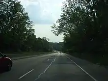 Cross County Highway would have bypassed downtown Montgomery, extending eastward from Montgomery Road to connect with Remington Road halfway to Remington, thus providing better connectivity with Loveland and Milford.[25] However, this easternmost segment was abandoned after Indian Hill refused to pass a resolution of consent, in an effort to preserve the wealthy village's undeveloped greenbelt.[6][26] The highway's abrupt end in Montgomery contributed to a significant increase in traffic to that city: by 1978, Montgomery Road carried an estimated 18,000 cars per day.[27] In 1984, Montgomery city officials unsuccessfully asked the county to either extend the highway east through Indian Hill or truncate it at Interstate 71.[23] Ohio Department of Transportation (ODOT) straight-line diagrams continue to indicate the unbuilt Montgomery bypass as "future construction".[4]