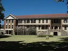 By August of the same year, the school in the little church hall was attracting a lot of interest, and its name had been changed to the Boys' High School, Rondebosch.[1] With the large number of applications the school was receiving from the local residents, the school committee was forced to become more selective in acceptances. Before the end of the year, the committee was looking for a site to construct a new, considerably bigger school. Soon after their search began, a nearby property - The Firs, a site with an area of almost one acre of ground, at the corner of Campground and Rouwkoop roads came up for sale. The committee negotiated a loan with the Standard Bank and bought the property for an amount of £1 900. The architect commissioned to design the new school was G G Milne.[1][2] Teaching in the new school commenced on 7 September 1898.[1] In 1947 the High School on Campground Road moved to its current location on Canigou Ave. The buildings at this location, see photo attached, including the Canigou boarding house were designed by architect Kilgour Parker, who was an Old Boy of the school, and well known Cape Town architect. His firm also were the architects for Wynberg Girls' High School and Rustenburg Girls High School, as well as several other schools in the Western Cape.
