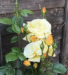 There is also a climbing variety, which was discovered by Pearce in 1978 and introduced as 'Arthur Bell, Cl.'.[5] In 2001, the variety was granted the Royal Horticultural Society's Award of Garden Merit.[6]