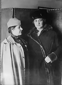 Morton had used her time in Macedonia learning about field hospitals, looking to replicate the success of the British and Scottish women's hospitals.[12] Upon her return, she lectured and advocated for further support in Serbia. In response, the Medical Women's National Association (MWNA) voted to establish a War Service Committee, with the aim of creating new American hospitals in Europe. Morton became the committee's first chairperson in 1917 and led the service, restructured to become the American Women's Hospitals (AWH), alongside Mary M. Crawford.[3][21][22][6] At the recommendation of William C. Gorgas, around this time Morton was additionally made chairman of the Committee on Women Physicians on the United States Council of National Defense, where she represented over 7000 women who were doctors.[7]