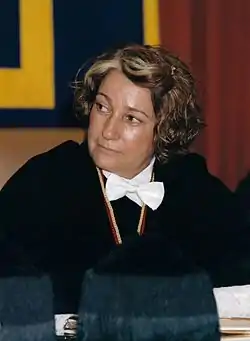She also collaborated in different projects with many town halls in Andalucía in order to raise the awareness of rural women about their situation of subordination and work discrimination.[16] She also worked in Latin America with women who fought for their rights in countries like Colombia, Ecuador, Peru or Bolivia and she participated in many programs to help them fight discrimination toward women. In recognition of her work on women's rights, she received several international awards throughout her career. She was named Honorary Professor of the National University of Saint Anthony the Abbot in Cuzco (Peru) in 1988 and of the University of Andina Simón Bolívar (Quito, Ecuador). In 2002, she received a Diploma of Honor from the Municipal Chamber of Curitiba (Brazil) and in June 2017 the National University of Catamarca in Argentina named her Doctor Honoris Causa.