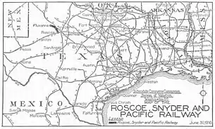 2. 1 2 "Roscoe, Snyder and Pacific Railway". The Handbook of Texas Online. The Texas State Historical Association. Retrieved 2015-09-05.
