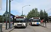 ![]() Buses at the transit center in 2013. The MAX station is in the background, at right. |