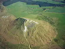 Until 1912, the summit resembled a sugarloaf, until a geological fault and possibly nearby alum and ironstone mining caused its collapse.[1] The area immediately below the summit is still extensively pitted and scarred from the former mineworks. The summit has magnificent views across the Cleveland plain as far as the Pennines on a clear day, some 40–50 miles (64–80 km) away.[5][6]
