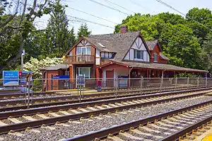 The station was originally built by the Pennsylvania Railroad between 1863 and 1871 (appears on 1871 atlas). As a modern SEPTA station, the building is also occupied by a real estate broker's office and underwent renovations for this use in 1983. The ticket office at this station is open weekdays 6:00 AM to 10:55 AM excluding holidays. There are 112 parking spaces at the station. This station is 10.9 track miles from Philadelphia's Suburban Station. In 2017, the average total weekday boardings at this station was 323, and the average total weekday alightings was 321.[4]
