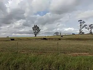 Roslyn was a railway station on the Crookwell railway line, New South Wales, Australia. The station opened in 1902[1] with the opening of the line, and consisted of a 100 ft platform on the down side of the line with a loop siding on the up side.[2] Cattle loading facilities and goods sheds were also provided. It was named after the estate of a local resident Dr Mitchell. In 1925,[3] the station became the location of the branch line to Taralga, with the new branch extending off the loop line.. The platform was shortened to 30 ft in 1969, and closed in 1974 with the cessation of passenger services. in 1975 the station and goods facilities were demolished.[4] The line through Roslyn closed to goods traffic in 1984, and little remains at the site apart from the mainline track, the goods loading bank and the station master's residence.