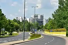 The Jana Rosoła Street (Polish: Ulica Jana Rosoła) is one of the three main thoroughfares of Warsaw's borough of Ursynów.[1][2] Named after Jan Rosół, participant of the January Uprising,[3] it links Wąwozowa Street in the southernmost neighbourhood of Kabaty with the Dolina Służewiecka,[note 1] that is Warsaw's section of National road 2, itself part of European route E30. The street was planned in the 1970s as one of principal arteries of the planned residential area of Ursynów,[note 2] where most of road traffic would be channelled.[1][5] Most other streets in the borough serve for local traffic only, or connect the three principal arteries.[1][4] The street itself started to be built in 1975, two years later the first plattenbau blocks of flats were completed in Ursynów.[1]