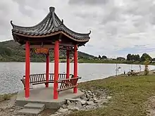 Beside Ross Lake is the Chinese Miners' Memorial Garden, created over a two-year period by the Ross volunteer group Westland Regional Environment Incorporated Society (WRENIS) led by Biddy Manera, at a cost of $180,000.[8] It includes a Chinese pavilion (liang ting) and ornamental tree planting.[21] In winter 2020 a slip in Jones Creek blocked the outlet of the lake, and the pavilion was flooded and thousands of dollars worth of trees and shrubs were killed.[8] Fully repairing the lake outlet would require a resource consent, so in the meantime WRENIS volunteers dug a small channel by hand to divert some of the flow of Jones Creek to a culvert, allowing lake levels to stabilise; work done by hand did not require a consent.[8] Their work was repeatedly vandalised, however, for months and on an almost daily basis, causing the lake to rise and drown the gardens again.[21] The Westland Regional Council, which manages waterways, was called in to support WRENIS's efforts.[22] After two rounds of public consultation involving the Department of Conservation, the Westland District Council, and the Ross Community society, all parties agreed in March 2021 to lower the lake levels and prevent future flooding, with the District Council covering the cost of the resource consent.[23]
