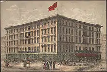 Rossin House Hotel was a mid-19th century hotel located at the southeast corner of King Street and York Street in Toronto, Canada. The original structure was built in 1856 and was destroyed by a fire and re-built in 1863. It was one of the city's pre-eminent hotels, with one 1866 guide claiming, "What the Fifth Avenue Hotel is to New York, and the Windsor is to Montreal, so the celebrated Rossin House is to Toronto."[1]