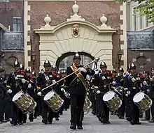 Today, it supports all marine and national events, including Koningsdag, Prinsjesdag, Veteranendag and Dutch Armed Forces Day as well as service days for the marines such as 10 December and 1 August. The band has also performed alongside other military bands representing the naval infantry of other countries, performing with the Royal Marines Band Service and the 2nd Marine Division Band (United States Marine Corps) on Horse Guards Parade during the 2014 Beating Retreat.[4] It has also performed several times in Russia touring to St. Petersburg in 1997 and 2003 (the former being in honor of the as part of the celebrations of 300th anniversary of Peter the Great) and the 2013 Spasskaya Tower Military Music Festival and Tattoo. During its visits to Russia, it has also performed with the Central Navy Band of Russia.[5] It has also performed with units such as the United States Marine Band, the Japan Maritime Self-Defense Force Band and the United States Navy Band.[6]