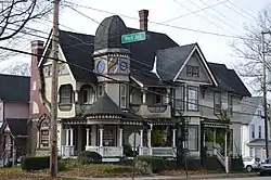 Roueche House is an historic home located at Meadville, Crawford County, Pennsylvania. It was built in 1899, and is a 2½-story, irregular frame dwelling in the Queen Anne style. It is clad in brick, clapboard, fishscale shingles, and pebble-dash panels. Its facade features a large curved brick chimney, multi-gabled and hipped roofs, balconies and round projecting porch, and a three-story hexagonal tower.[2]