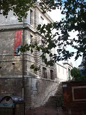 Since 1984, the museum has occupied the Hôtel d'Hocqueville, known as the Hôtel de Bellegarde. Dating from the 17th century,[2] it is built on the ruins of the castle of Rouen, itself built on the ruins of the Gallo-Roman amphitheater of Rotomagus. This mansion, with part of its outbuildings, was listed as a historic monument on April 8, 1935; it was then classified as a historic monument on July 28, 1937 for the facades and roofs of the hotel.[3]