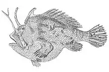 Kuiterichthys furcipilis, the rough anglerfish, is a species of frogfish endemic to the coastal waters of southern Australia and Tasmania. This species inhabits reefs and the ocean floor at depths from 10 to 240 metres (33 to 787 ft). It grows to a length of 15 centimetres (5.9 in) TL.[1]