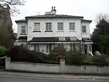Between 1838 and 1840, the local Colbatch family built four large detached villas in the former Rose Hill Park on a southwest-facing part of the hill.[43][44][45] They were described as the "grandest and most ostentatious part of Round Hill",[46] and the first (Rose Hill Villa, finished in 1838) was a "classic Victorian building".[45] All four were large family homes in the Regency style popular in Brighton over the previous 30 years.[20][47] Iron gates, protected by gatekeepers who lived in three cottages in the grounds, gave the villas privacy.[48]