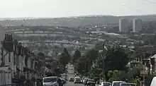 Round Hill's elevated, fairly central position gives excellent inward and outward views.[11][12] To the northeast, the South Downs can be seen; long views of the English Channel are possible to the south, beyond the city centre and St Peter's Church; to the southeast, Elm Grove, Race Hill and Brighton General Hospital can be seen on high ground beyond the Lewes Road valley; and to the west, Preston Park (the city's oldest and largest public park)[13] can be seen.[11][12] Crescent and Wakefield Roads have long southward views towards the city centre,[12] as do the small blocks of flats which replaced some large villas in the middle of the suburb.[2] The tall viaduct is the main landmark to the west and north.[9] There are clear views into Round Hill from many parts of Brighton, especially areas to the east and southeast such as Race Hill.[12]