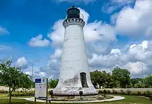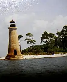 Round Island Lighthouse stood from 1859 to 1998 on the southwest end of Round Island in the Mississippi Sound, 4 miles (6.4 km) south of Pascagoula, Mississippi.[6] In September 1998, the lighthouse was toppled by Hurricane Georges. In 2010, the base of the structure and other lighthouse remnants were removed from Round Island and relocated within the City of Pascagoula for restoration.