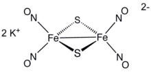 - ↑ Jaworska, Maria; Stasicka, Zofia (2005). "Structure and UV-Vis spectroscopy of the iron-sulfur dinuclear nitrosyl complexes [Fe2S2(NO)4]2− and [Fe2(SR)2(NO)4]". New Journal of Chemistry. 29 (4): 604. doi:10.1039/B409519G.