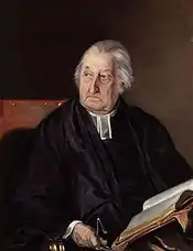 Rowland Hill was born at Hawkstone Park (11 miles from Shrewsbury), Shropshire, 23 August 1745, the sixth son of Sir Rowland Hill, 1st Baronet (died 1783), he was educated at Shrewsbury School, Eton College and at St John's College, Cambridge (B.A., 1769),[1] where he came under the influence of the Methodists. For preaching in the open air in and around Cambridge without a license, Rowland Hill was opposed by the authorities and frequently assaulted by mobs. Finally, in 1773, after he had been refused ordination into the Church of England by six bishops, he was ordained by the bishop of Bath and Wells and offered the curacy of Kingston in Somerset, but was subsequently denied priest's orders and continued his vocation as an independent or nonconformist. In 1773 he married Mary Tudway.[2]