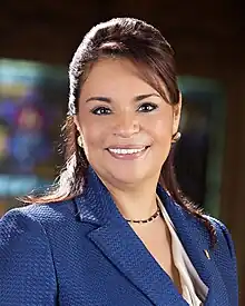 Ingrid Roxana Baldetti Elías (born May 13, 1962)[2][3] is a Guatemalan politician who served as the first female Vice President of Guatemala from 2012 until her resignation amid a corruption scandal in 2015.[4][1][5] In 2018, she was sentenced to 15½ years in prison for illicit association, fraud, and influence peddling,[6][3][1][7] and to 16 years in 2022 for illicit association and customs fraud for her part in the La Linea corruption ring.[6][8]