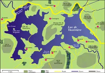 Royère-de-Vassivière (French pronunciation: [ʁwajɛʁ də vasivjɛʁ], literally Royère of Vassivière; Occitan: Roièra) is a commune in the Creuse department in the Nouvelle-Aquitaine region in central France.