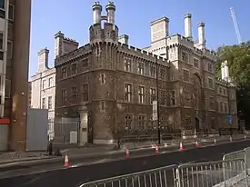 The Commission of Lieutenancy for the City built Finsbury Barracks for the Royal London Militia on a site adjacent to the HAC's headquarters at Armoury House. The building was designed by Joseph Jennings and was completed in 1857.[14]