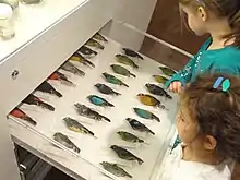 The Patrick and Barbara Keenan Family Gallery of Hands-On Biodiversity introduces visitors to the complicated relationships, which occur among all living things in a fun and interactive space. People of all ages can explore touchable specimens and interactive displays while gallery facilitators help visitors discover the living world around them. Mossy frogs, a touchable shark jaw, snakeskin, and a replica fox's den are some of the objects that connect young visitors to the diversity and interdependence of plants and animals.[60]