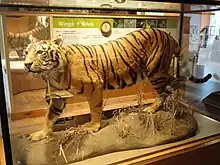 The Reed Gallery of the Age of Mammals explores the rise of mammals through the Cenozoic Era that followed the extinction of the non-avian dinosaurs. There are over 400 specimens from North America and South America in addition to 30 fossil skeletons of extinct mammals.[81] The gallery's entrance begins with mammals that arose shortly after the extinction of the non-avian dinosaurs. A highlight of this gallery is the sabre-toothed nimravid Dinictis.