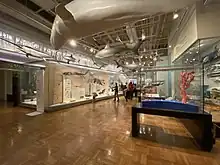 The Bat Cave is an immersive experience for visitors that presents over 20 bats and 800 models in a recreated habitat, with accompanying educational panels and video.[74] Originally opened in 1988, the bat cave reopened on 27 February 2010 after extensive renovations.[75] The 1,700-square-foot (160 m2) exhibit most notably includes a recreation of St. Clair Cave located in Saint Catherine Parish of central Jamaica. The original cave was formed by an underground river that flowed 30 metres (98 ft) below ground through the limestone and was three kilometres long. This cave was then recreated in the museum based on ROM fieldwork conducted in Jamaica in 1984.[76] A large amount of bat research has been conducted with support from the ROM. In 2011, the ROM hosted a "bat workshop" connected with the 41st Annual North American Symposium on Bat Research.[77]