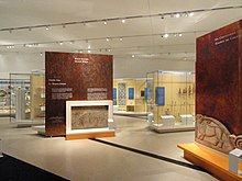The A. G. Leventis Foundation Gallery of Ancient Cyprus houses roughly 300 artifacts, focusing on the art created in Cyprus between 2200 and 30 BC. The gallery is divided into five sections: "Cyprus and Commerce", "Ancient Cypriot Pottery Types", "Sculptures", "Ancient Cyprus at a Glance" and "Art & Society: Interpretations". The collection includes a reconstructed open-air sanctuary and a rare bronze relief statue of a man carrying a large copper ingot.[97]