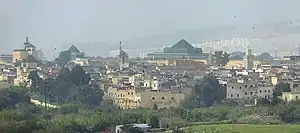The palace is located in Fes el-Jdid ("New Fes"), the fortified royal district founded by the Marinid sultans in 1276.[1] Today it covers 80 hectares, taking up much of the city's area.[5]: 310 Inside, the vast palace grounds are taken up by numerous courtyards, residential pavilions, gardens, and fountains.[4][5] Its complicated and irregular layout is the result of repeated modifications, reconstructions, and expansions over the centuries, much of it now dating to the 'Alawi period (17th-20th centuries).[3][4]
