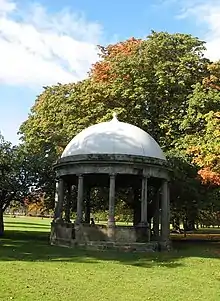 The Royal Pump Room is a Grade II* listed building in Harrogate, North Yorkshire, England. Today it houses the town's museum – operated by Harrogate Borough Council. It was formerly a spa water pump house. It is located in Crown Place in the western part of Harrogate town centre, opposite the town's Valley Gardens park. It is bounded by two streets, Crescent Road and Royal Parade. Today, the Pump Room consists of both the original 1842 stone rotunda and a glazed annexe which was opened in 1913.[1] The Pump Room offered guests of the town an all weather facility where they could drink sulphur water which was pumped on site from a natural spring known as the Old Sulphur Well. The building also had a social element to it as it provided guests with a place to meet friends and get to know others.