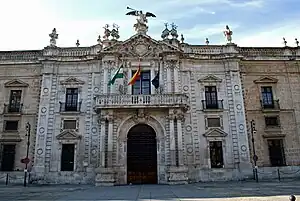 The Royal Tobacco Factory (Spanish: Real Fábrica de Tabacos) is an 18th-century stone building in Seville, southern Spain. Since the 1950s it has been the seat of the rectorate of the University of Seville. Prior to that, it was, as its name indicates, a tobacco factory: the most prominent such institution in Europe, and a lineal descendant of Europe's first tobacco factory, which was located nearby. It is one of the most notable and splendid examples of industrial architecture from the era of Spain's Antiguo Régimen.[1]