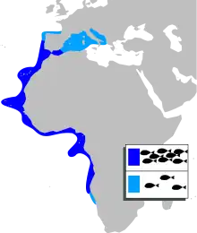 1. 1 2 3 de Morais, L.; Sylla, M.; Camara, K.; Williams, A.B.; Sidibé, A.; Carpenter, K.E.; Montiero, V.; Lindeman, K.; Nunoo, F.; Quartey, R.; Djiman, R.; Sagna, A. (2015). "Plectorhinchus mediterraneus". IUCN Red List of Threatened Species. 2015: e.T194433A2334878. doi:10.2305/IUCN.UK.2015-4.RLTS.T194433A2334878.en. Retrieved 20 November 2021.