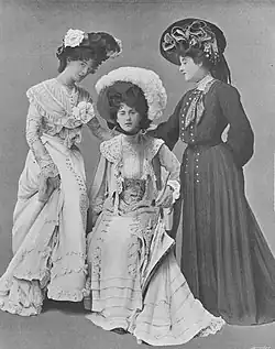 Her roles included Minnie Templar in A Message from Mars (1900),[13] Lady Marjory Crichton and Ada Branscombe in Three Little Maids (1902)[14][11] – both comedies that met with great success in Australia,[15] Daisy Armitage in Tom, Dick and Harry (1901),[16][17] Mrs Gillibrand in In the Soup (1901),[17] Lady Violet in A Pantomime Rehearsal,[17] the Duchess of St. Jermyns in The Catch of the Season (1904),[8] Lady Rosaline in The Belle of Mayfair (1906),[18] Jill in Little Bo-Peep (1908)[19] and Rosie Jocelyn in Saucy Sally.[17] Other plays in which she appeared include A Highland Legacy (1901),[20] The School Girl (1903)[21][22] and Divorcons (1907).[23] Among the plays in which she appeared in America were in the Charles Frohman production of The Dairymaids, composed by Paul A. Rubens (1907), in New York, in which she was Lady Brudenell,[23] and Three Twins (1908) in New York and Detroit, in which she played the leading part of Molly Somers.[24][25] She played Mrs. Newlywed in The Newlyweds and Their Baby in Toronto in 1908 and on Broadway the next year.[26][22]