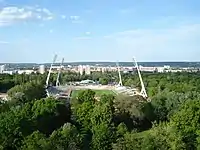 The land on which the stadium sits today formed part of what was then called the English district of Dresden, an affluent area home to the city's bourgeoisie and nobility.[5] For more than 110 years the 8 courts equipped venue included a flat velodrome, tennis, cricket and finally a soccer pitch. In the 1870s, during the administration of the park by the "Verein für Volkssport Dresden", the newly established Dresden English Football Club (D.E.F.C.) began playing its first matches in the area. D.E.F.C. were Germany's first football club,[6] arguably the first football club established outside of Great Britain, and thus likely making the area the first in which Cambridge rules football was played in Germany, meaning the park is of great significance to German football. here starts on the same known ground for competitors which flung the leather ball into the net, "With naked legs!". Until 10 March 1894, a game was never lost (during 20 years record period), without somebody not conceding a goal. Some of the first soccer players were: Beb (Captain), Burchard, Graham, Crossley, Spencer, Atkins, Ravenscraft, Johnson, Le Maistre, Luxmoore and Young. The president of the club and venue was the Anglican Rev. Bowden. He came from the neighborhood and later by Socialist Unity Party of Germany's blasted All Saints Church.[7] In addition here was the fathoming of the youth football, what it takes to turn into – invincible versus other clubs. In 1883, the venue at "Güntzwiesen" was in first time recorded in public interests of organized gymnastics federations. In 1885 the VI. German Gymnastics Festival (transl.: Deutsches Turnfest) took place, with 20,000 participants and 270,000 marching athletes[8] from the today known Deutscher Turnerbund.[9] Later in 1896, the city of Dresden has been purchased additional surrounded land to setting it up into a proportional manner of living standards.[10] The ground of this constructed stadium was a part of about 8 courts, which every citizen of Dresden could use for free. The surface spread over 70,000 m2. So far the complete area has been well-kept by gardeners. Every few years the area has been advanced in small ways. For a long time the Georg-Arnold-Bath has been an unknown part of the stadium. A 5m diving platform with extra 60m stands for swimming competitions existed. It was to be demolished in World War II again. Costs conducting oneself for all about 36,000 RM, to the extent of stronger money value. The new successor was the Dresdensia FC.