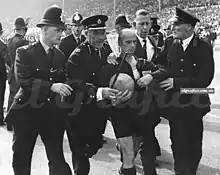 ![]() Kreitlein (holding the ball) retires from the pitch escorted by the police, after the controversial England v Argentina match in 1966 | |||