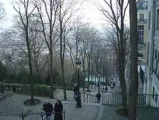 The Rue Foyatier is a street on the Montmartre butte ("outlier"), in the 18th arrondissement of Paris. Opened in 1867, it was given its current name in 1875, after the sculptor Denis Foyatier (17931863).[1] One of the most famous streets in Paris, it consists of flights of stairs giving access to the top of the hill, the Sacré-Cœur Basilica, and the other attractions of the upper-Montmartre neighborhood. The Montmartre funicular runs alongside it.