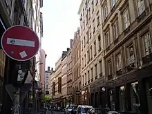 In the street lived many famous goldsmiths, painters and surgeons,[4] as well as Alphonse Daudet for a while.[5] In the past, at the architural level, there was a bust of a Roman emperor at No. 11, and a medallion with a lamb hanging from a chain above the door at No. 24.[4]