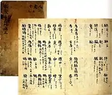 - 1 2 Bailey, Don Clifford (1960). "Early Japanese Lexicography". Monumenta Nipponica. 16 (1/2): 1–52. doi:10.2307/2383355. JSTOR 2383355. p. 6.