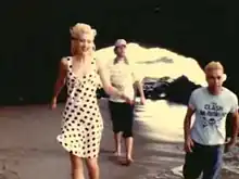 A scene from the music video featuring the band members at the beach