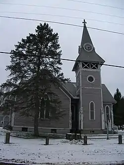 The historic district extends mainly along Route 153 for about 0.5 miles (0.80 km), extending north from the railroad in the south to Youlin Road and Rupert Mountain Road in the north. In addition to 74 historically significant structures, the district includes surrounding open land that historically formed an important part of the village's rural character. Most of the buildings in the district are wood-frame structures built in vernacular forms of architectural styles popular in the 19th century. The most architecturally elaborate building is the Methodist church, a Gothic structure built in 1884 with funding from J.H. Guild, the village's wealthiest resident and owner of a small patent medicine factory.[2]